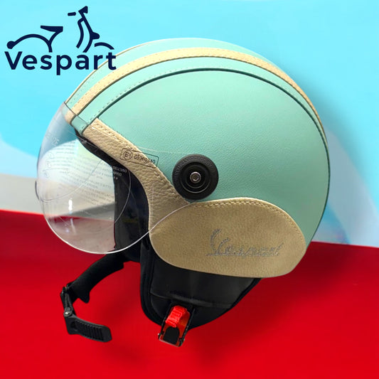 Casco Vintage in pelle personalizzato Gts Compatibile Vespa Verde Amabile Moto Guzzi Harley Davidson